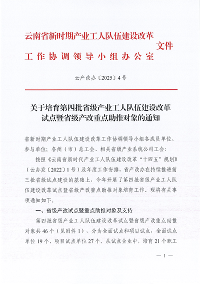 按照《云南省新時(shí)代產(chǎn)業(yè)工人隊伍建設改革“十四五”規劃》(云辦發(fā)[2022]1號)及年度工作安排,云南省產(chǎn)改辦在持續推進(jìn)前三批省級試點(diǎn)建設的基礎上,于今年開(kāi)展了第四批省級產(chǎn)業(yè)工人隊伍建設改革試點(diǎn)暨省級產(chǎn)改重點(diǎn)助推對象培育工作。