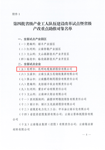 喜報!昆明電纜集團入選第四批省級產(chǎn)業(yè)工人隊伍建設改革試點(diǎn)暨重點(diǎn)助推對象